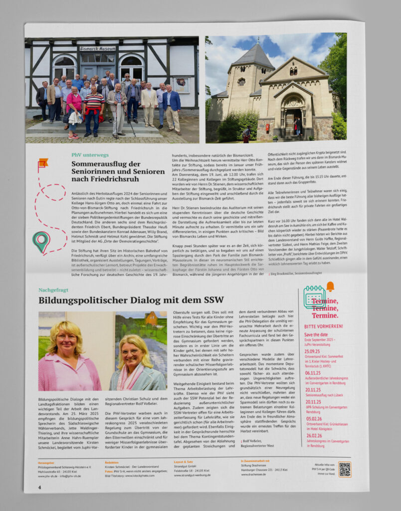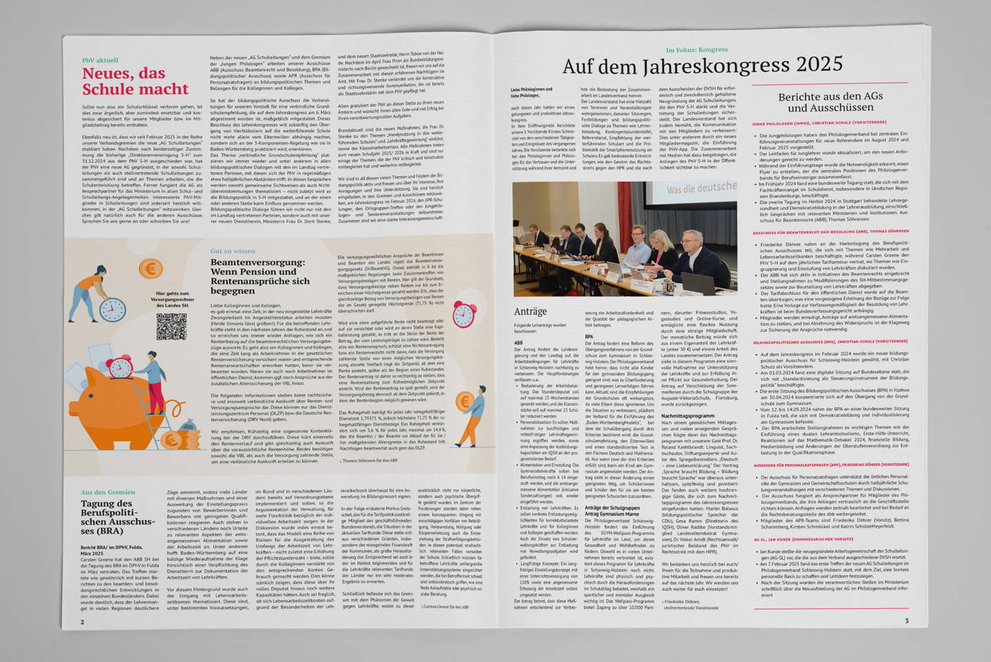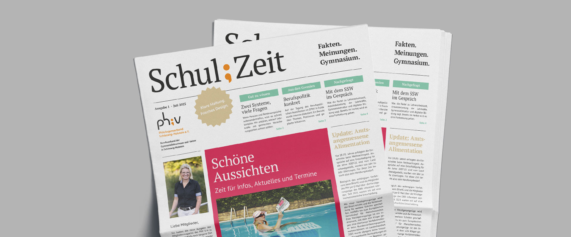Im vergangenen Jahr durften wir die Mitgliederzeitung des Philologenverbandes gestalterisch neu aufstellen. Ziel war ein zeitgemäßer, gut lesbarer Auftritt, der informiert, einordnet und gern zur Hand genommen wird. Entstanden ist eine schicke, moderne Zeitung im klassischen Layout – ergänzt um einen passenden Umschlag, der der Publikation Wertigkeit verleiht und sie klar als Verbandsmedium positioniert.